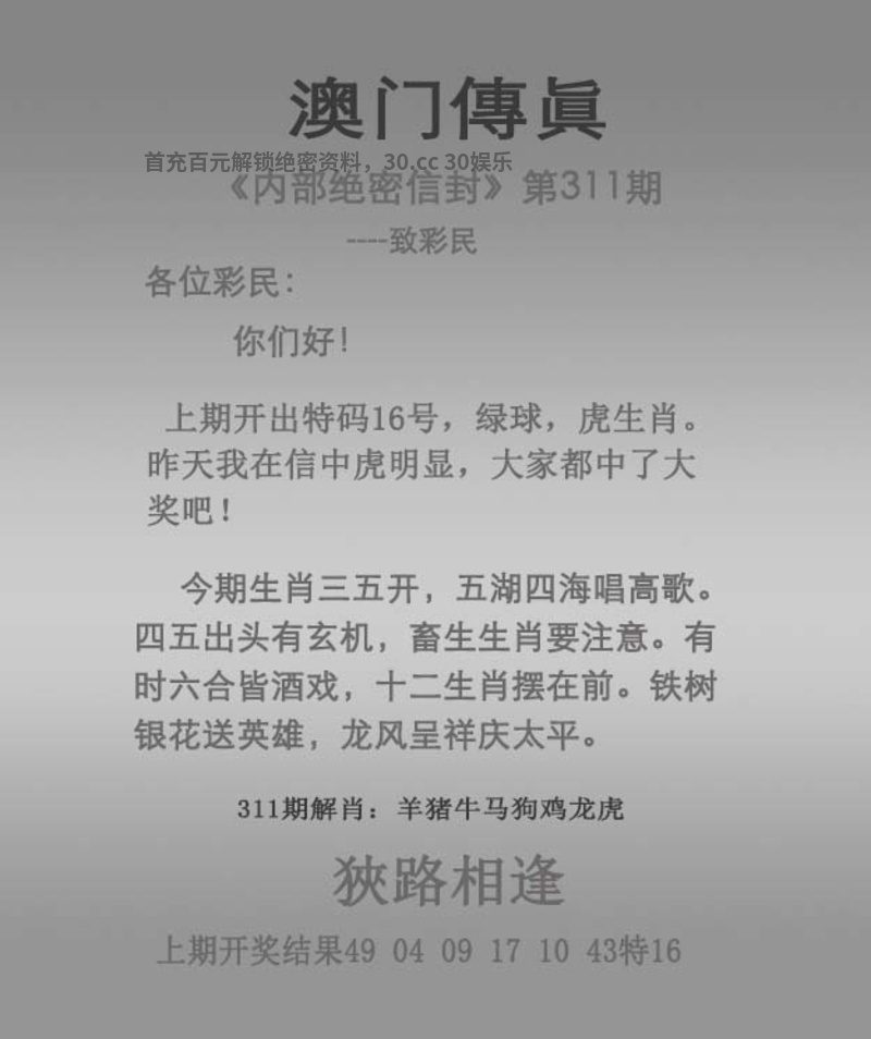 | 314期:今日闲情暗语:【更新】 解:资料正在更新 送:资料正在更新 |